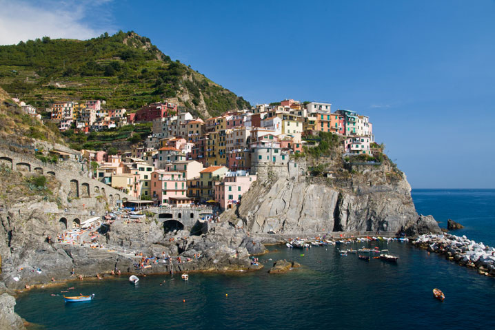 Manarola è il secondo paese delle Cinque Terre che è possibile raggiungere partendo da La Spezia: il borgo è situato su un promontorio roccioso, su cui si ergono le colorate case-torri del paese che si snodano lungo il corso del Volastra attorno al quale vicoli e scalinate si diramano fra gli edifici mentre nei dintorni sorgono ovunque rigogliosi vigneti: Manarola è infatti il luogo dove avviene la maggior produzione di vino in tutte le Cinque Terre.